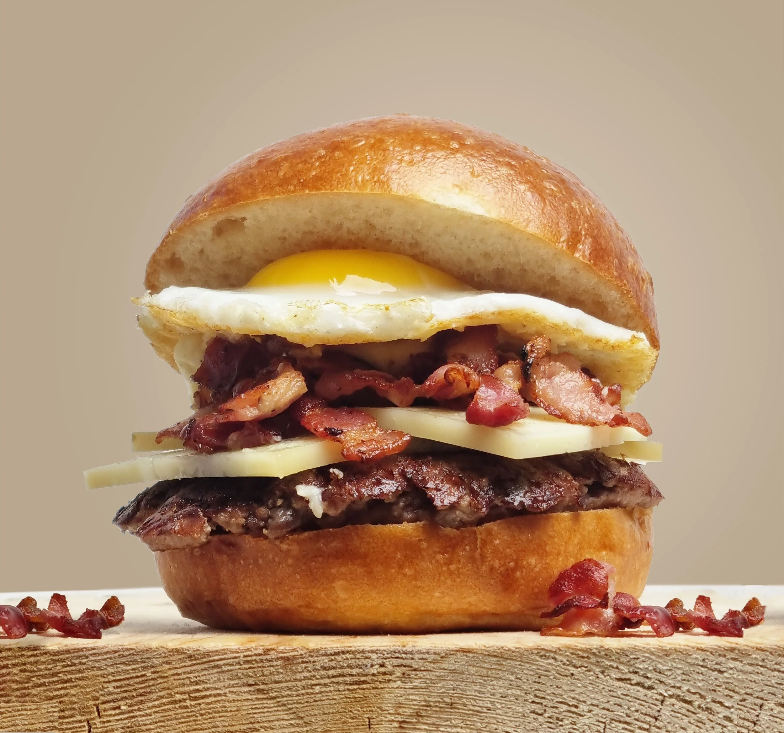 150g Premium-Rindfleisch aus stressfreier Weidetötung, serviert im hausgebackenen Brioche-Bun mit Bachtelberger-Käse und hausgemachter Sauce.