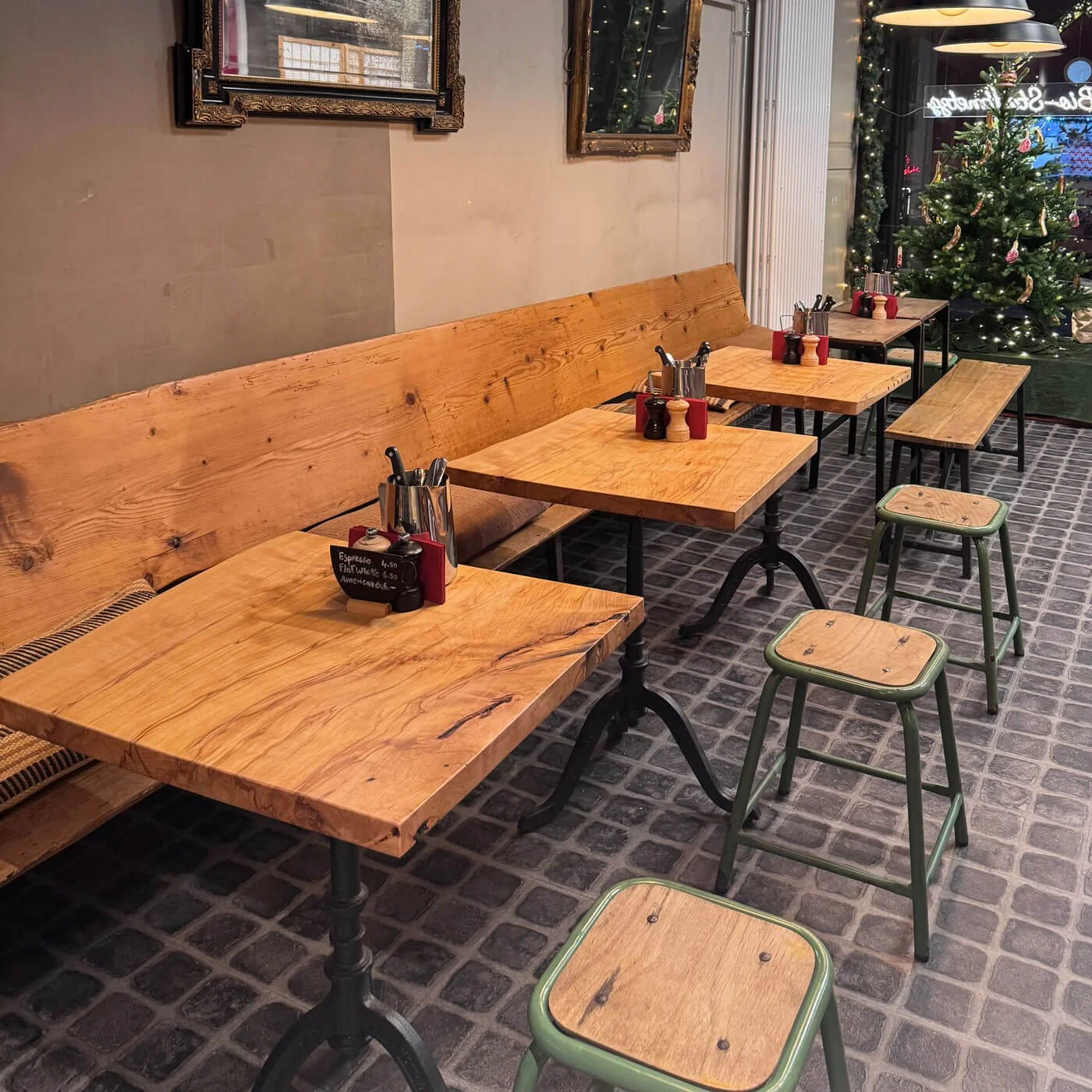 Wir haben ca. 16 Sitzplätze. Bei schönem Wetter können Sie auch draussen sitzen.